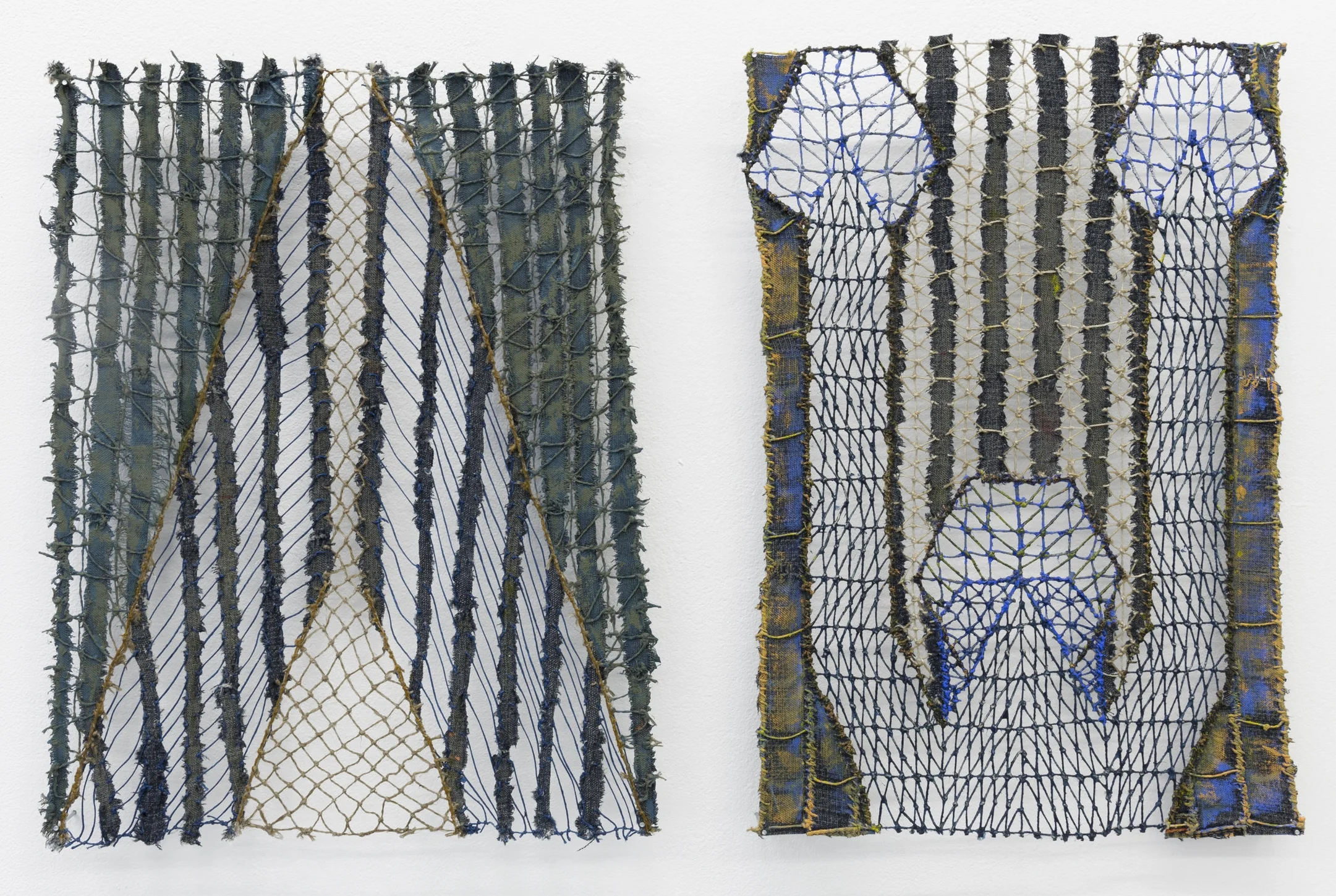 Tooth, 2019; Canvas, silk, linen and wool threads, fabric dye, oil paint; 66” x 72”